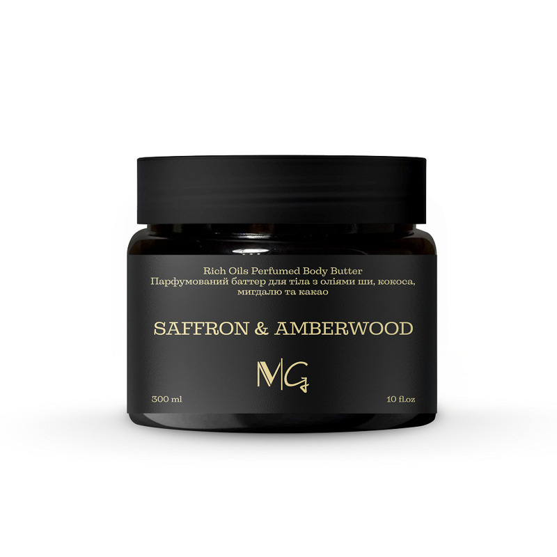 Батер парфумований з оліями ши, кокоса, мигдалю та какао MG Saffron and Amberwood 300 мл