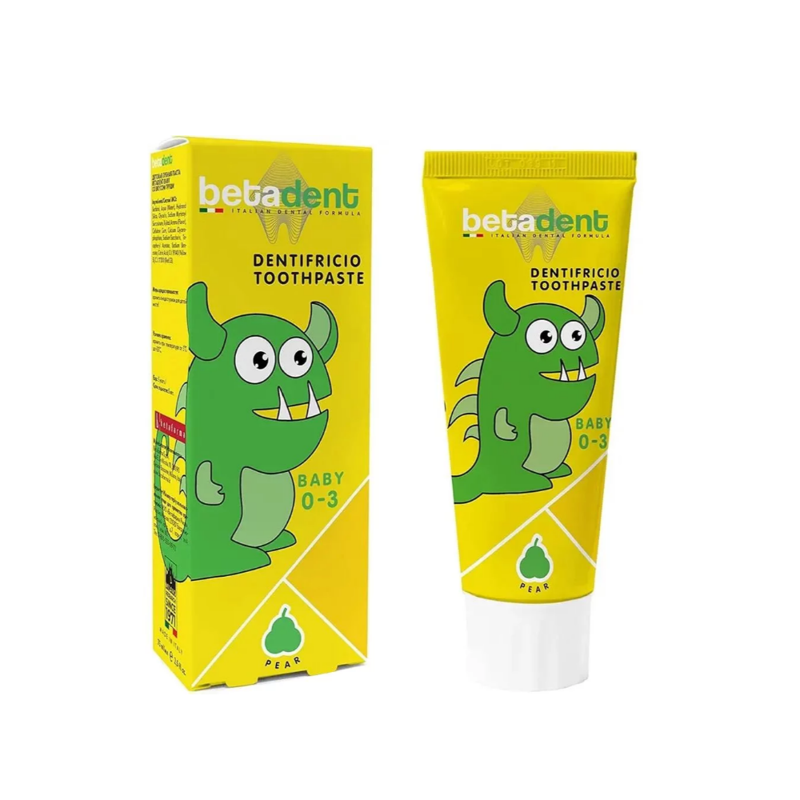 Зубна паста Betadent Baby Pear 0-3 – спеціальна формула, що не містить фтору. Забезбечує делікатний догляд за першими зубами малюка. Полегшує прорізування перших зубів.