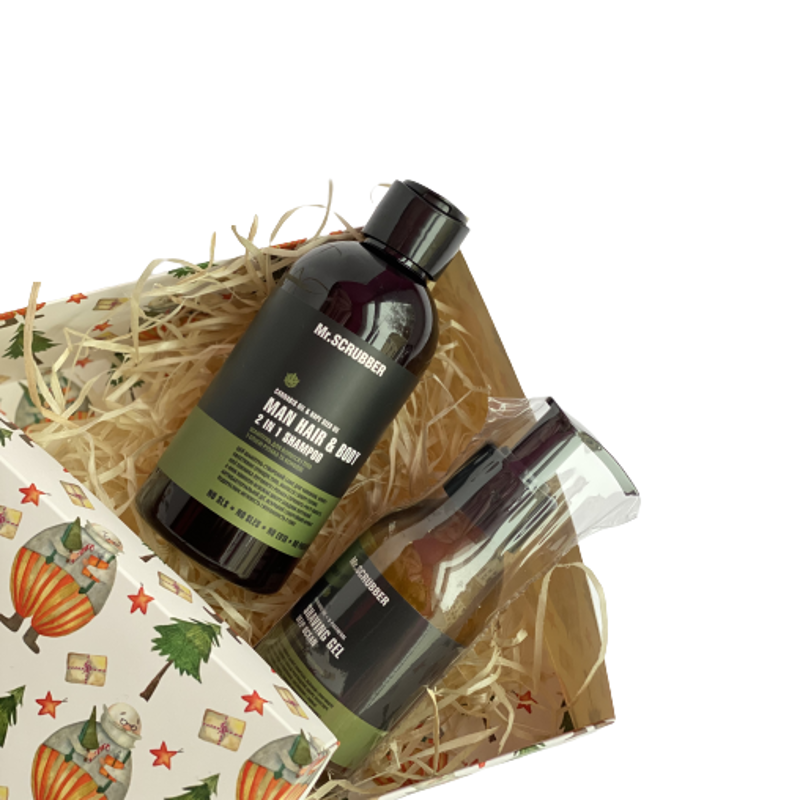 До набору входить: 1.Шампунь 2в1 250 мл. 2.Гель для гоління 125 мл.