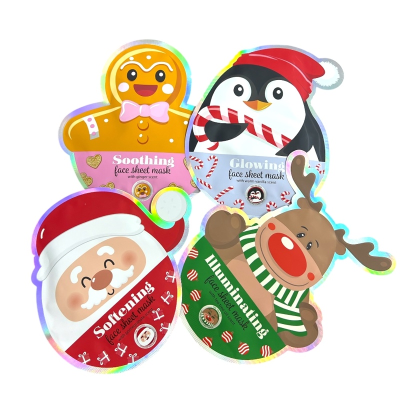Маски дбайливо зволожують, пом’якшують і освіжають шкіру, надаючи їй сяйва та доглянутого вигляду. Ідеально підходять для моментів релаксу після святкової метушні або як милий косметичний подарунок.