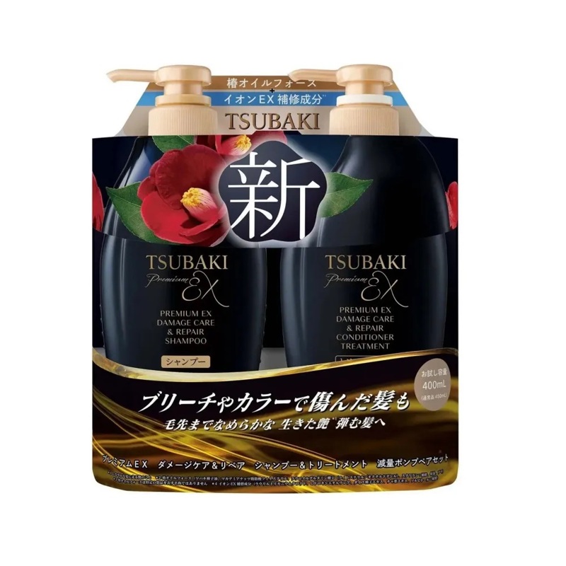 Шампунь та кондиціонер Tsubaki Premium Tsubaki Premium EX Intensive Repair ефективне відновлення волосся працює за етапами: розширення — проникнення — ущільнення. Це допомагає правильно покращити структуру та надати здорового блискучого вигляду пасмам. Головними активними компонентами у ньому є: